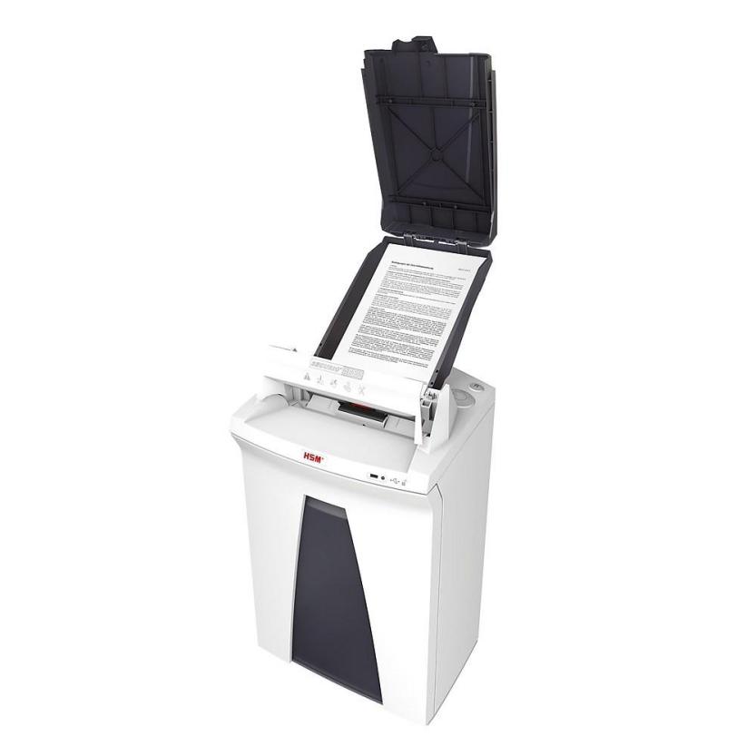 Destruidor com corte simplificado graças à função Autofeed. Introdução fiável do papel com a tecnologia Nanogrip. Novo tipo de corte: corte em partículas. Motor potente para um funcionamento contínuo.